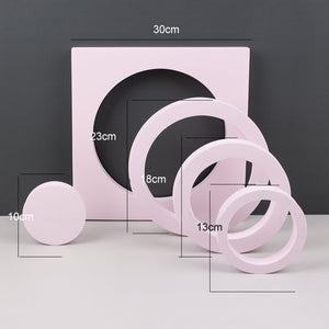Upgrade your photography game with these Round Combo Kits Geometric Cube Solid Color Photography Photo Background Table Shooting Foam Props in striking pink. Crafted from rigid polymer foam, these background materials offer versatility and style to elevate your photo compositions.