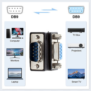 RS232 DB9 Pin Male to Female 90 Degree Elbow Adapter
