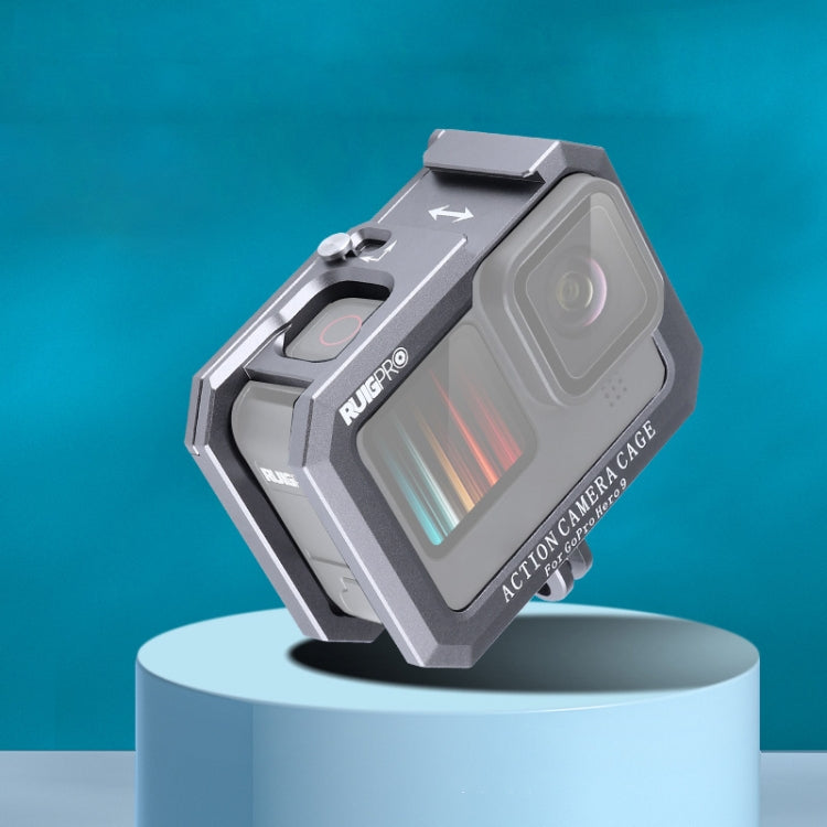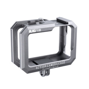 RUIGPRO Metal Border Frame Mount for GoPro HERO10 Black / HERO9 Black with Dual Cold Shoes Base (Silver Grey)