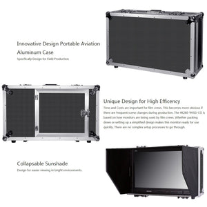 With a stand-alone size of 732x410x39mm, the monitor comes with a 5A power adapter, battery back buckle, mini HDMI cable, TALLY adapter kit, aluminum box, sun visor, and product manual, making it a comprehensive solution for your professional display needs.