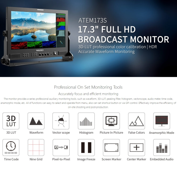 SEETEC ATEM173S 17.3 inch 3G-SDI HDMI Full HD 1920x1080 Multi-camera Broadcast Monitor(US Plug)