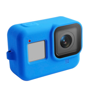 Enhance the durability and style of your GoPro HERO8 Black with this silicone protective case cover in blue, equipped with a practical wrist strap for added convenience.