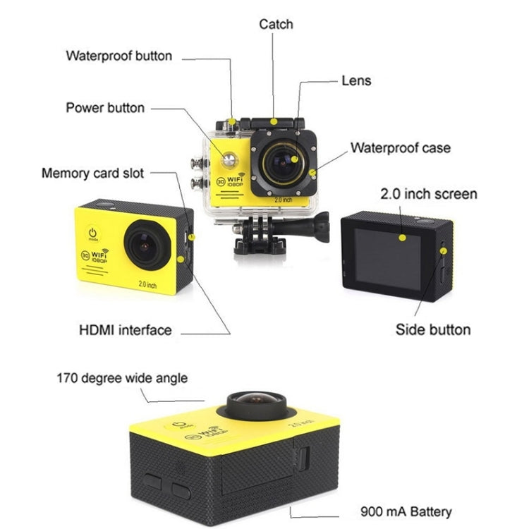 SJ7000 Full HD 1080P 2.0 inch LCD Screen WiFi Sports Camcorder Camera with Waterproof Case and Wide-Angle Lens