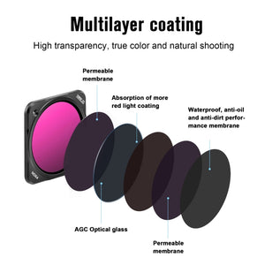 1. ND filter can prevent excessive light exposure and make the picture have appropriate dynamic blur. CPL adjustable filter, the brightness changes continuously with the rotation of the lens, making the picture more comfortable and smooth