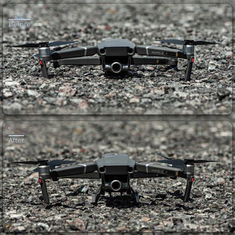 2. Effectively increase the height of the fuselage by 35mm, which can prevent ground debris from contaminating the fuselage or damaging the gimbal when taking off and landing the drone. It can still take off and land on uneven ground.