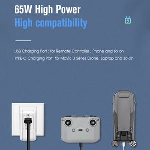 65W GaN Smart QC 3.0 Fast Charger for DJI Mavic 3 - US Plug