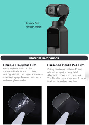 - High Definition and Transmittance: Crafted from flexible fiberglass, these films deliver exceptional clarity and high transmittance, ensuring a crystal-clear view through your OSMO Pocket.