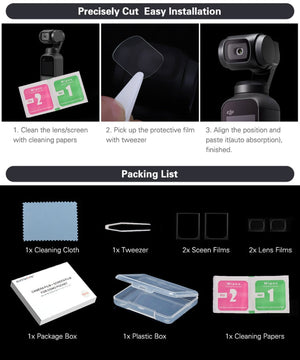 - Precise Fit: Accurately sized for a perfect match, the lens and screen films seamlessly integrate with your DJI OSMO Pocket, offering comprehensive protection.
