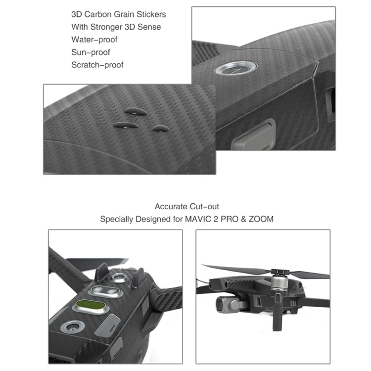 Black Carbon Fiber Waterproof 3D Sticker Kit for DJI Mavic 2 Pro / Zoom Drone