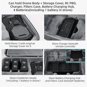 - All-in-one Storage: The bottom cover is spacious enough to store the drone body, protective cover, remote control, charger, filter set, charging butler, and up to 4 batteries, ensuring everything is in one place.