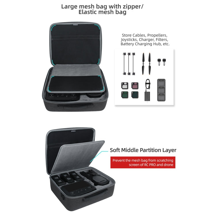- Ample Storage: The visible large-capacity zipper mesh bag allows you to store various accessories such as adapter cables, propellers, and rockers.