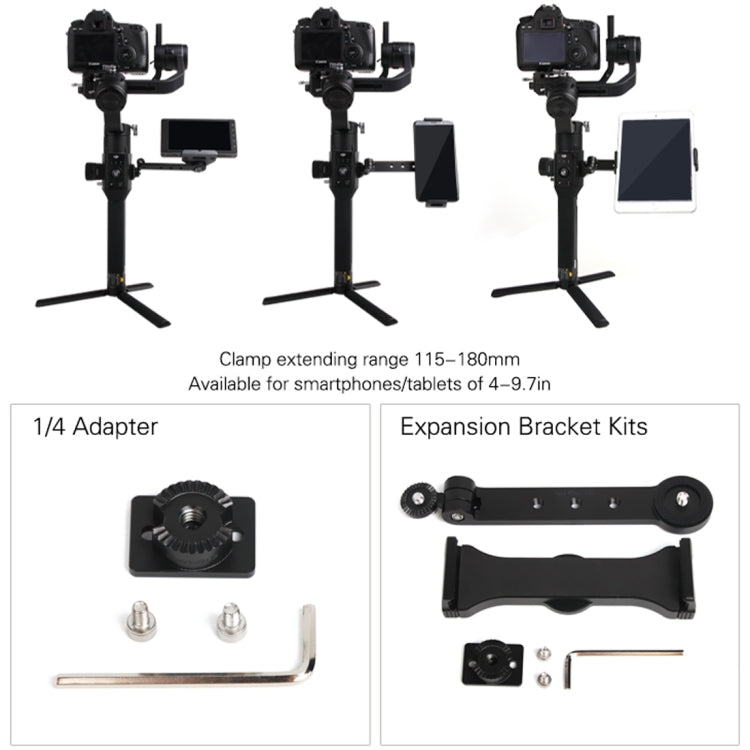 - Package includes: 1x Extension bracket, 1x clamp, 1x adapter ring (Note: Camera, Gimbal, Monitor, and other accessories are not included)