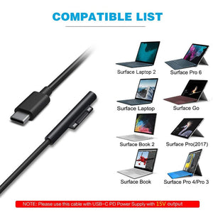 This Surface Pro USB-C Power Adapter Charger Cable allows you to conveniently charge your Microsoft Surface Pro devices with a USB-C/Type-C PD charger. With a charging power of 45W or higher and 15V output, it ensures efficient and rapid charging. The 1.5-meter length provides flexibility for charging in various environments, be it the bedroom, office, or on the go. Perfect for Microsoft Surface Pro 6, 5, 4, 3, and Microsoft Surface Go, this cable is a must-have accessory for seamless charging.