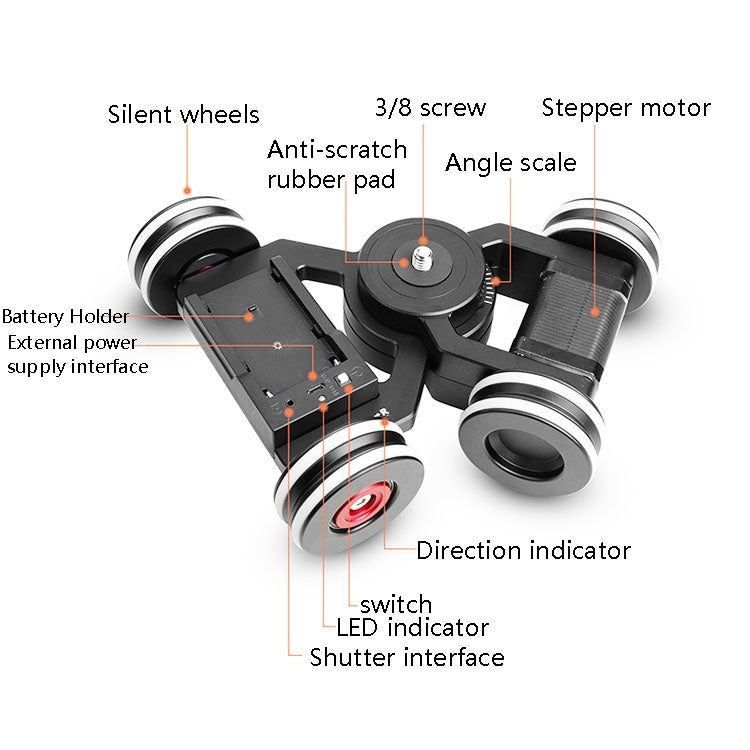 Electric Slide Rail Rolling Dolly Car with Bluetooth Control and Time-lapse Photography
