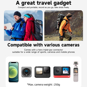 - Wide Compatibility: It comes with a three-jaw adapter suitable for various action cameras, accommodating multiple series (ensure a maximum load of 250g).