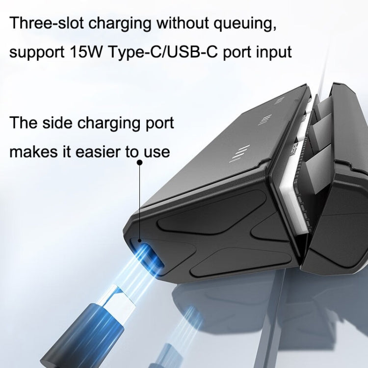 - Rapid Three-Slot Charging: Say goodbye to waiting in line with the support for 15W Type-C/USB-C port input, enabling quick and efficient charging for all three batteries simultaneously.