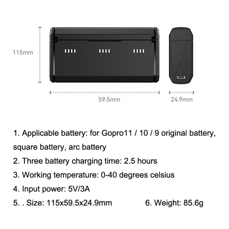 - Universal Compatibility: Compatible with Gopro11 / 10 / 9 original battery, square battery, and arc battery, ensuring versatility.