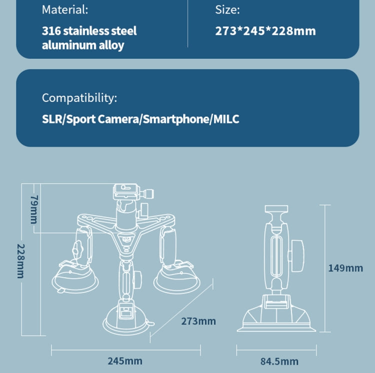 Constructed from 316 stainless steel and aluminum alloy, this mount boasts durability and resilience. Measure its 273 x 245 x 228mm dimensions and 580g weight, making it a portable and reliable companion for your photography and videography adventures.