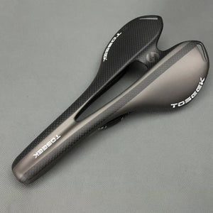 TOSEEK Road Bike Carbon Fiber Saddle - Grey Texture Hollow Seat