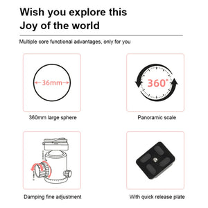 - Independent Control Knobs: 3 knobs for fixing/uninstalling the QR plate and adjusting the shooting angle in different directions.