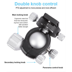 Compact and Reliable Ball Head: The tripod features a compact ballhead structure with CNC machining and a large 36mm ball diameter, delivering exceptional stability for precise positioning.