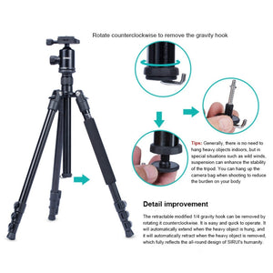 - Enhanced Functionality: The tripod features a spherical pan/tilt, an improved 1/4 gravity hook for hanging heavy objects, and an upside-down function for creative macro photography. It is designed to meet the needs of Nikon, Sony, Olympus, and other SLR mirrorless cameras.