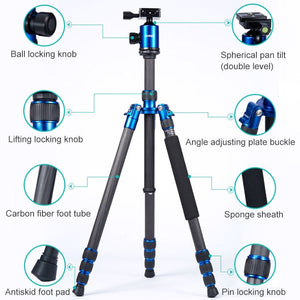 Adjustable Carbon Fiber Tripod with Ball Head for SLR Camera from TRIOPO Oubao C-608S