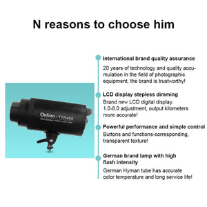 TRIOPO Oubao TTR400W Studio Flash with E27 150W Light Bulb - Powerful 400W Studio Flash with Quick Recycle Time