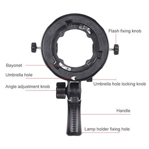 - Enhanced Features: With a compact and flat structure, horizontal or vertical flash installation, umbrella input hole, adjustable handle for lighting direction, and compatibility with studio flash accessories, this holder offers versatility and convenience.