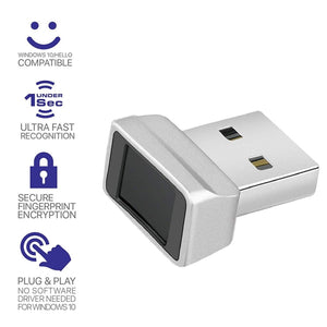 USB Fingerprint Reader Module for Windows 8 / 10 / 11 Hello (Silver Gray)