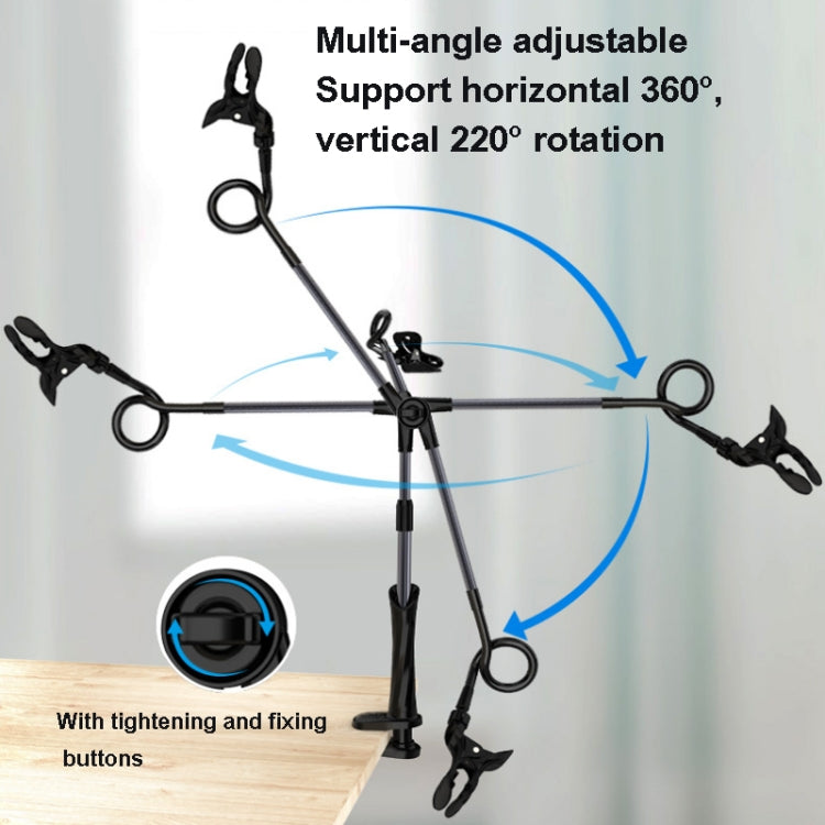 Adjustable Two-Section Arm Mobile Phone Stand for Bedside or Desktop(Black + Gold)