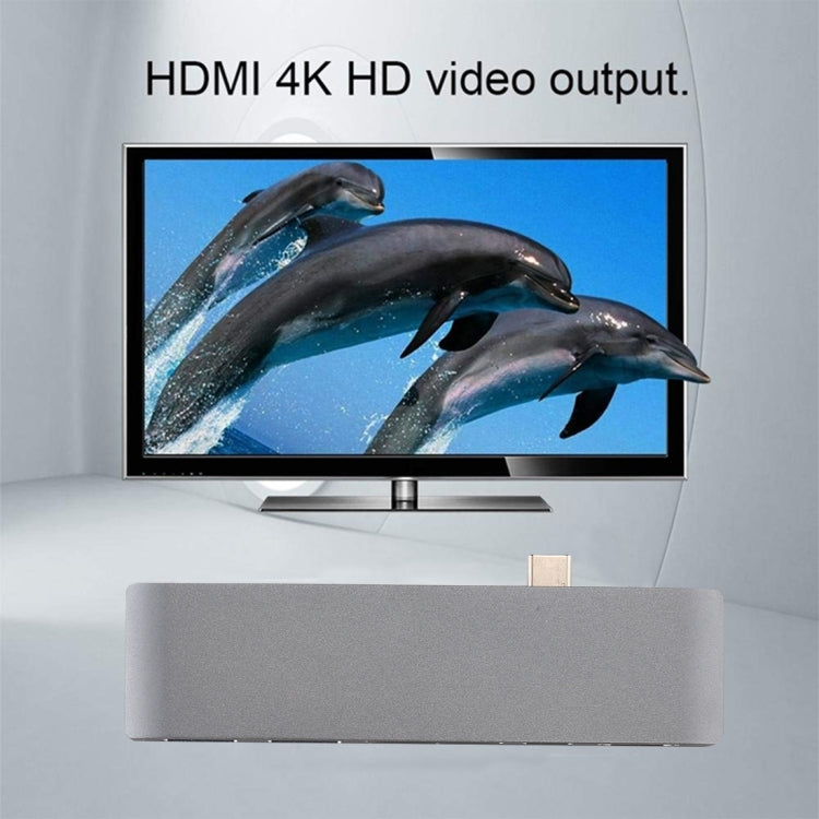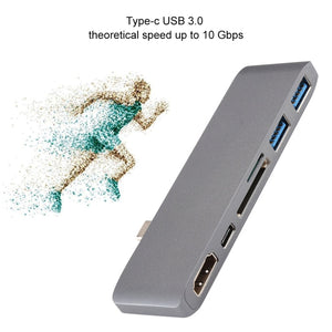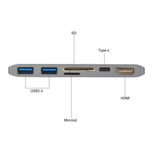 Type C To HDMI USB3.0 HUB USB-C Charging SD/TF Card Adapter - Gray For Macbook