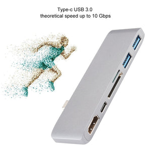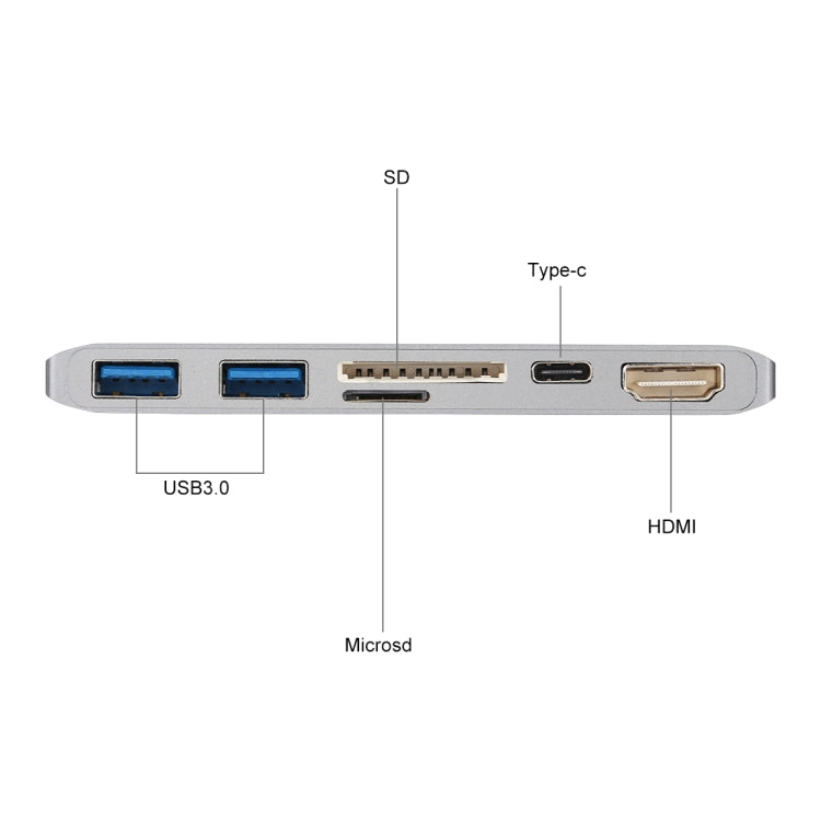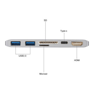 Type C Combo Hub with HDMI, USB 3.0, SD/TF Card Adapter and Charging for Macbook GW (Silver)