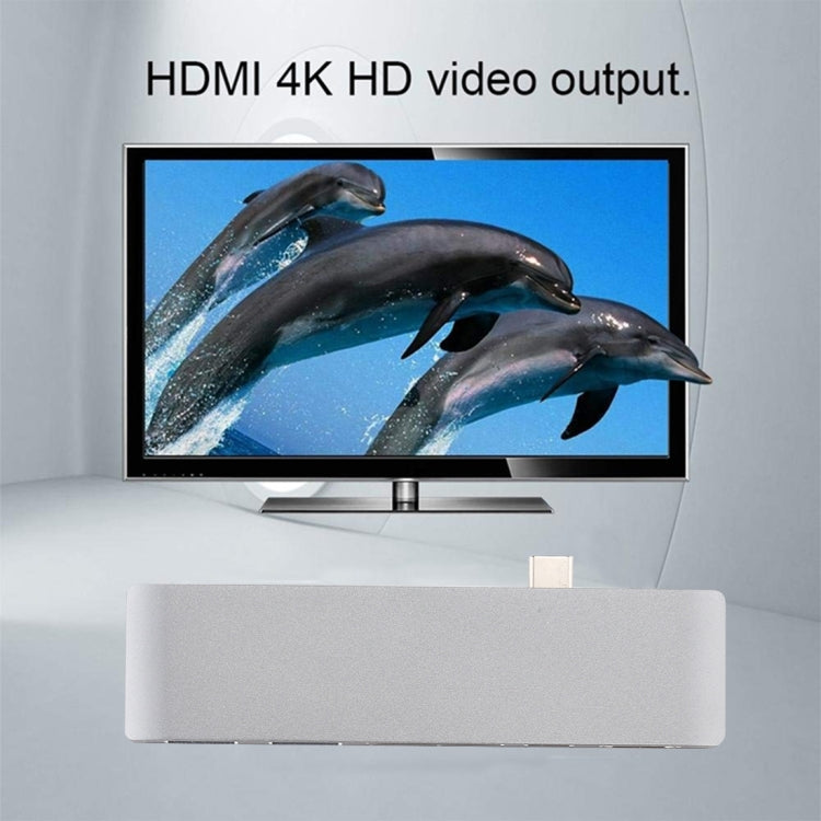 Introducing the Type C To HDMI USB3.0 HUB USB-C Charging SD/TF Card Adapter For Macbook GW(Silver) - a versatile and powerful hub designed to enhance your Macbook experience.