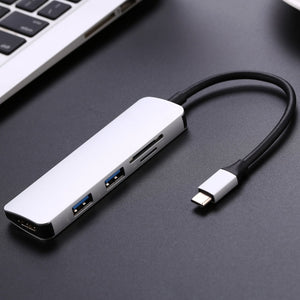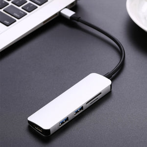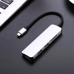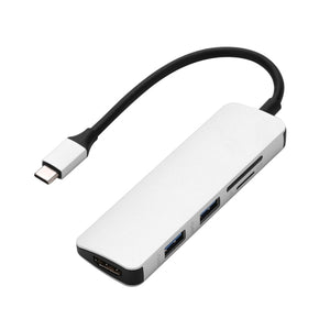 5-in-1 Silver Type-C Hub with HDMI, 2 USB 3.0 Ports, and SD/TF Card Reader