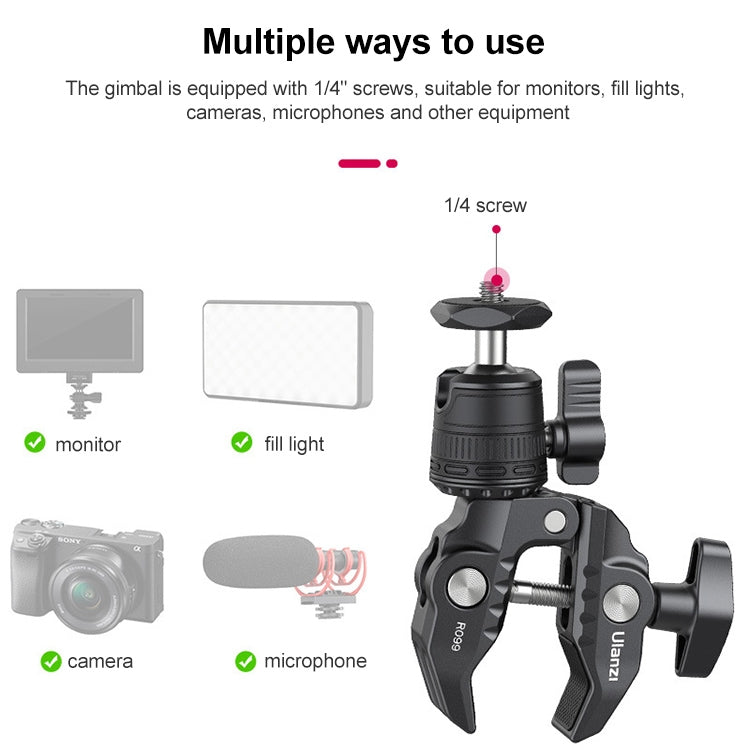 Ulanzi R099 Camera Super Clamp with 360 Degree Adjustable Mini Ball Head