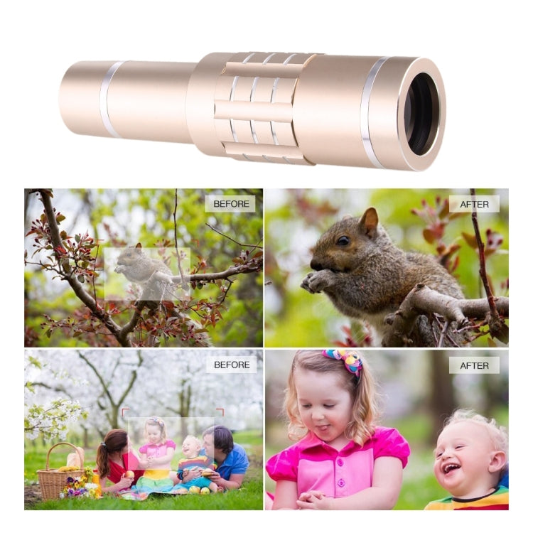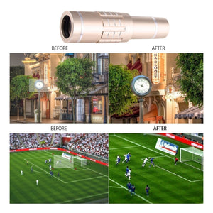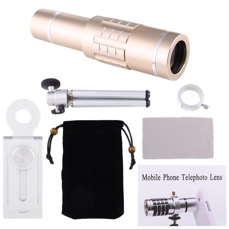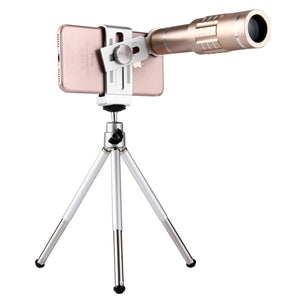 Universal 18X Telescope Lens Kit with Tripod and Clip - Gold
