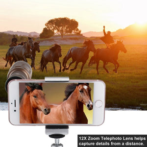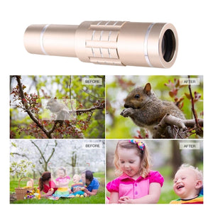 Upgrade your mobile photography game with this versatile 3-in-1 telescope lens kit, complete with a tripod mount and mobile phone clip in an elegant gold finish.