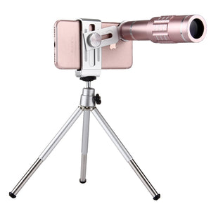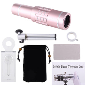 Upgrade your mobile photography game with the Universal 18X Magnification Lens. This 3-in-1 kit includes a powerful magnifying lens, a sturdy tripod mount, and a convenient mobile phone clip in an elegant rose gold color.