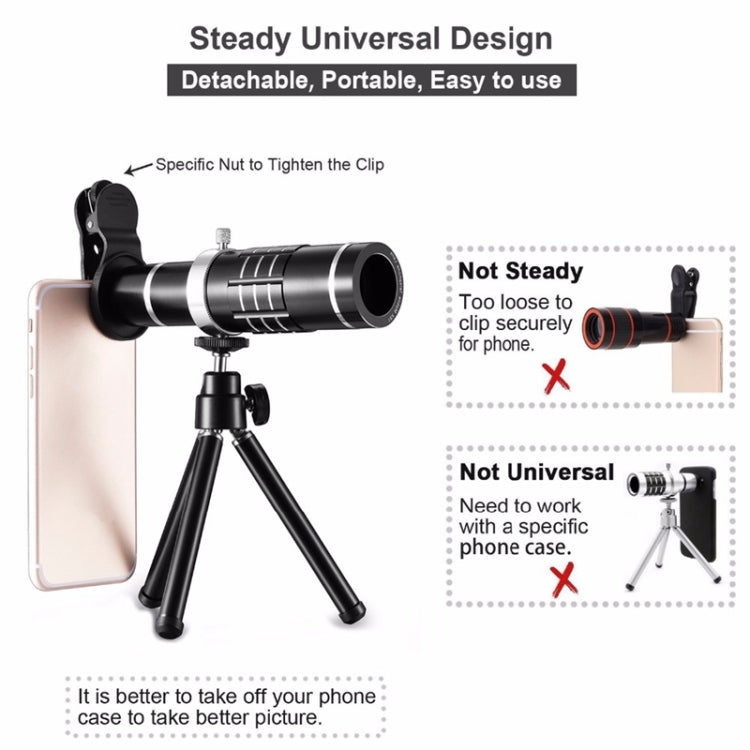 - Complete Package: The package includes everything you need, including the 18X Zoom Telephoto Lens, tripod mount, a convenient carrying bag, lens covers, phone clip, and easy-to-follow instructions.