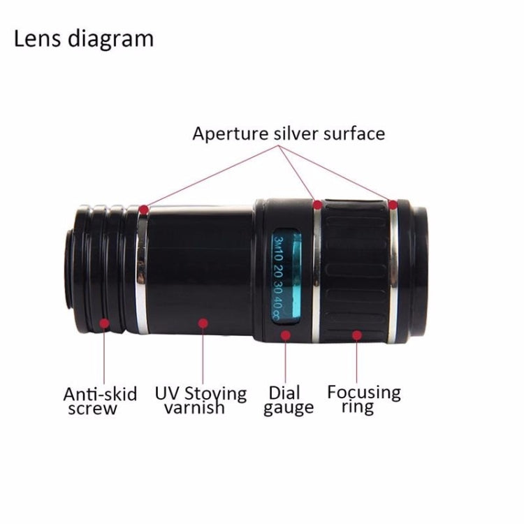 Universal Mobile Phone 12X Zoom Optical Zoom Telescope Lens with Clip