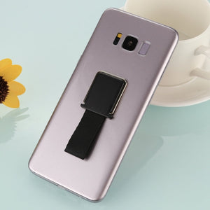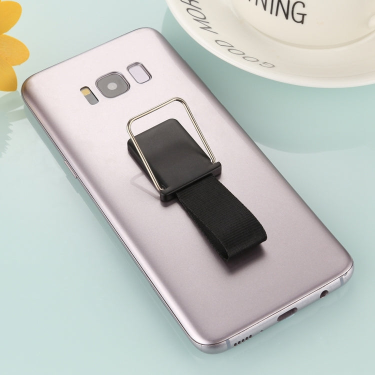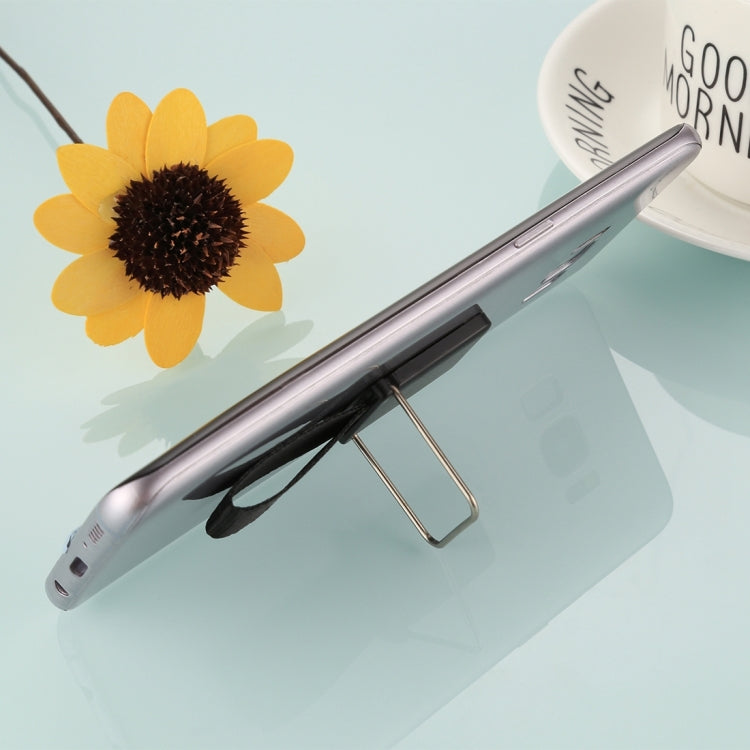 Versatile Black Universal Reusable Phone Holder Stand with Finger Lanyard & 3M Back Adhesive for iPhone, Tablets, Galaxy, Huawei, Xiaomi, LG, HTC, and More