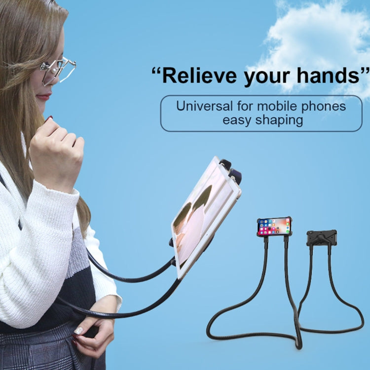 Experience ultimate convenience and hands-free viewing with the Upgrade Lazy Bracket Neck Holder. Made of high-quality material, this flexible long arm mount offers stability and unique configuration options for your phone.