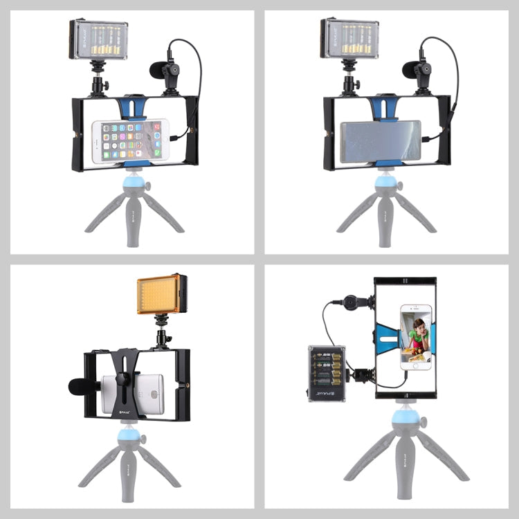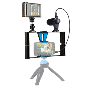 PULUZ 3-in-1 Vlogging Kit with LED Selfie Light and Microphone for Smartphones (Blue)