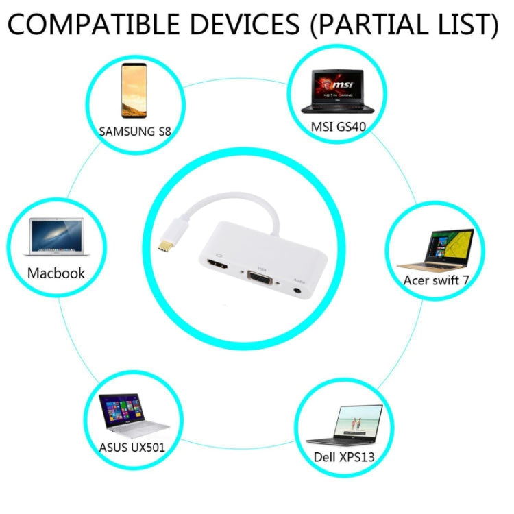 USB-C Multiport Adapter with Audio, VGA, and HDMI (White)