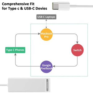 Compatible with Mac Book Pro 2016 / 2017/2018, USB C laptops, C-type phones, Nintendo Switch, and more devices with a USB C interface