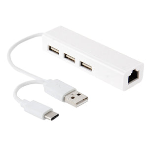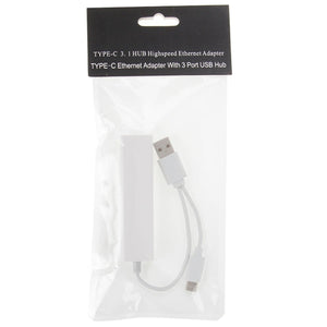 USB-C 3.1 to 3-Port USB Hub + Ethernet Adapter for Galaxy S8 & S8+ / LG G6 / Huawei P10 & P10 Plus / Xiaomi Mi6 & Max 2 and More Smartphones
