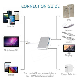 Enhance your workflow and multimedia experience with this 3-in-1 adapter, which offers seamless connectivity and high-speed data transmission. With its USB PD (Power Delivery) function, you can charge your devices without worrying about power shortage. The adapter's maximum 1080P resolution support ensures stunning visuals, making it ideal for various devices including the new Apple Macbook Pro, Chromebook Pixel, Dell XPS 13, and more.