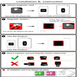 - Package Contents: The package includes everything you need for installation, including flat magnetic stickers, magnetic sheets for tablets and mobile phones, alcohol wipes, and an instruction manual.