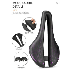 - Hollow ventilation design reduces pressure on sensitive body parts for a comfortable ride